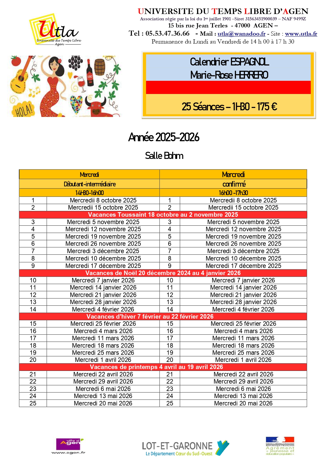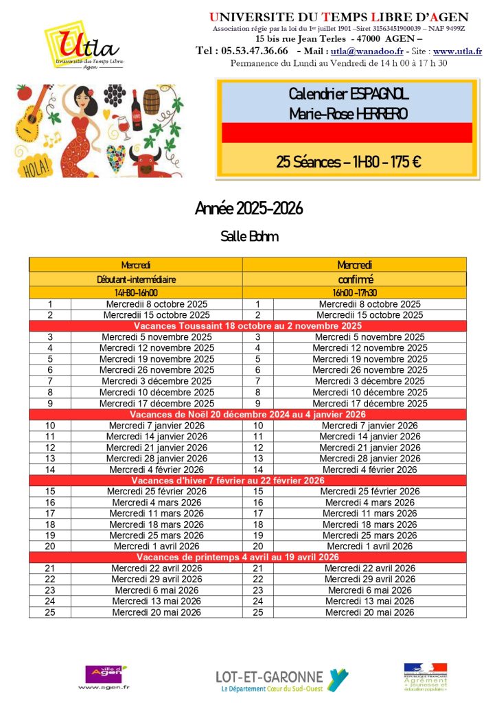 Débutant – intermédiaire: Pour ceux   qui n’ont jamais fait d’espagnol en langue étrangère ou bien qui veulent réactualiser des connaissances scolaires. L’objectif est de savoir se présenter, de connaitre un vocabulaire de base, la grammaire élémentaire, de s’exprimer sur des sujets courant